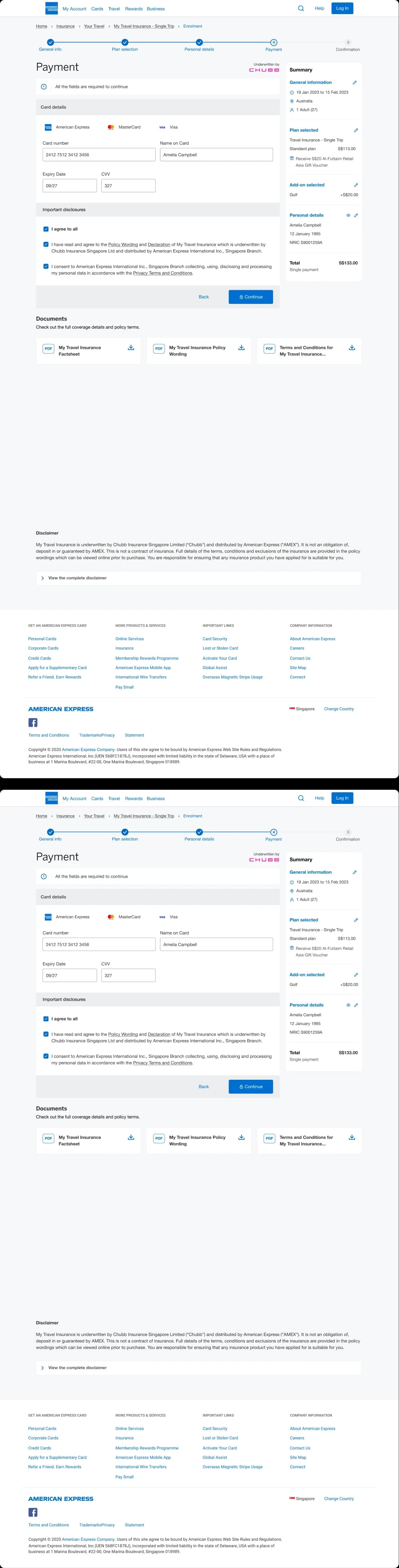 With travel insurance sales diminishing, American Express brought us on to take a closer look at the problem. Through a fast and thorough discovery phase, we found the issue, fixed it, and provided a design system that could be used by other teams to increase sales.