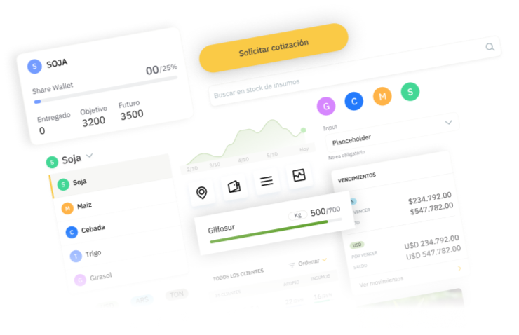 The platform provides producers with fundamental information for their decision making in the agricultural business, with real-time data on weather, prices and products. And is also where all transactional information with the company is visible.