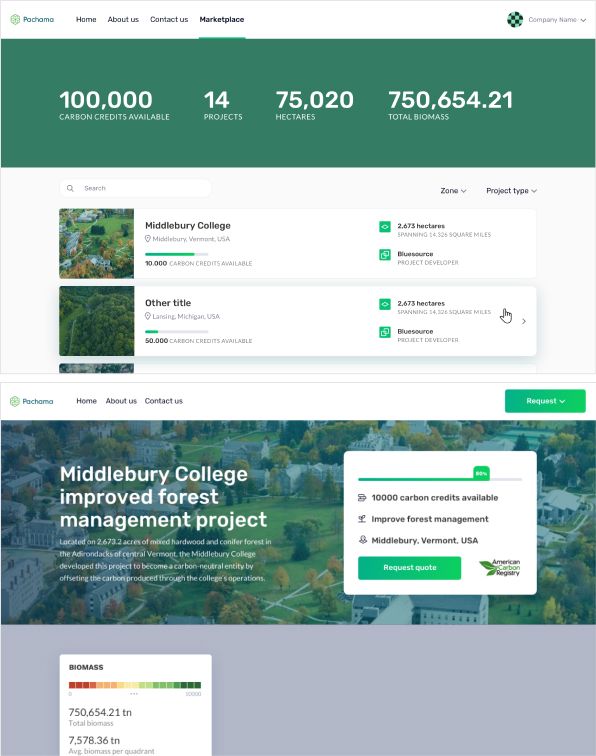 These companies needed a place where they could access carbon credits, with a sort of marketplace. They also needed to follow up on the development of the projects in which they had invested, due to an important insight that arose in user interviews.