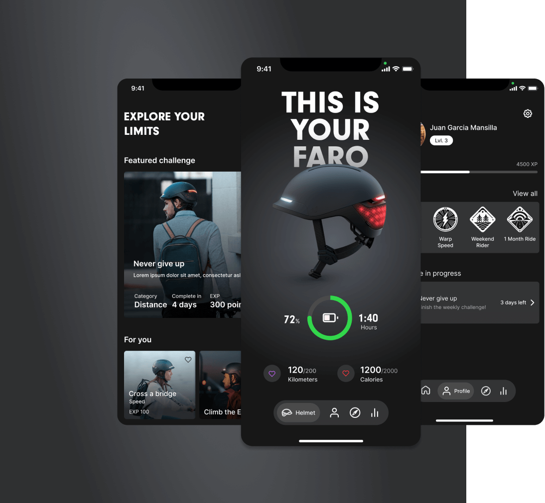 Unit 1 is an American Company that creates hardware and software tech-enabled products for Action Sports & Urban Mobility. We worked together to design and develop the mobile app for their urban helmet FARO in both iOS and Android.