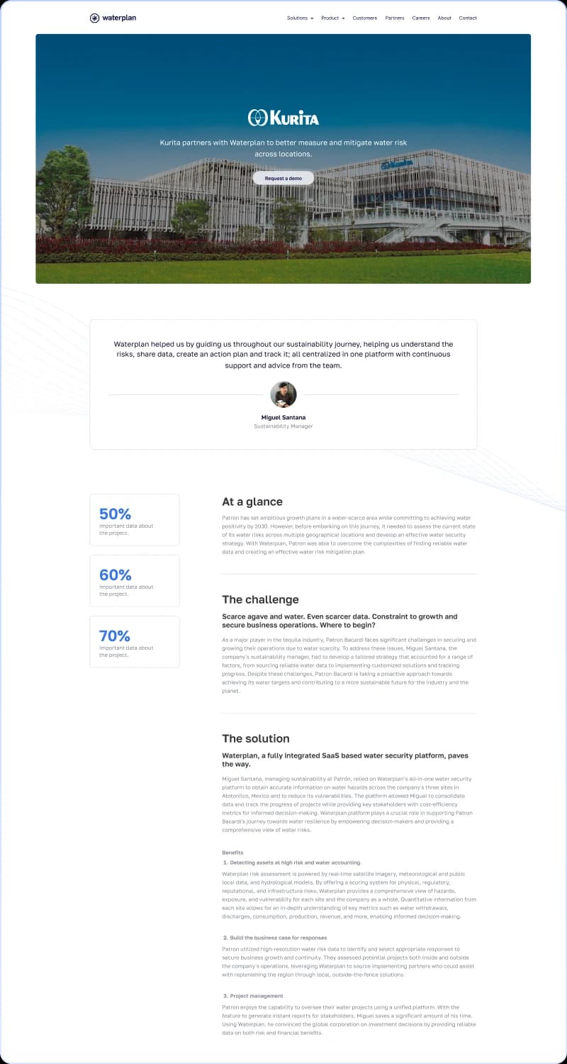 “Who else is using this?” is one of the most common questions we heard. And with a wide range of customers across industries, we needed to equip the Waterplan sales team with helpful answers.